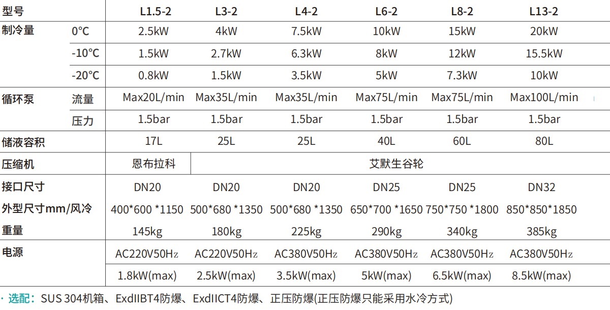 | L8-2 | 15kW | 12kW | 7.3kW | Max75L/min | 1.5bar | 60L | 艾默生谷輪 | DN25 | 750*750*1800 | 340kg | AC 380V 50Hz | 6.5kW(max) |