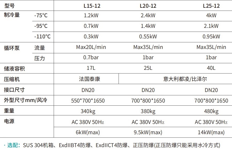 | -75℃ | -95℃ | -110℃ | 流量 | 壓力 | ||||||||