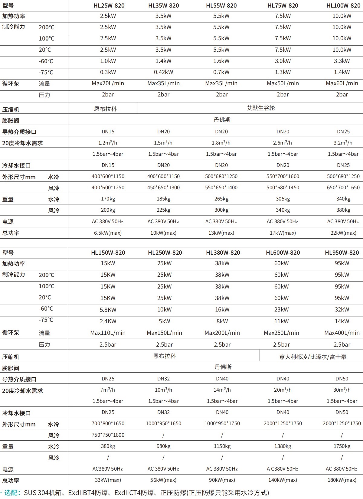 | 200℃ | 100℃ | 20℃ | -60℃ | -75℃ | 流量 | 壓力 | 水冷 | 風冷 | 水冷 | 風冷 | ||||||||||